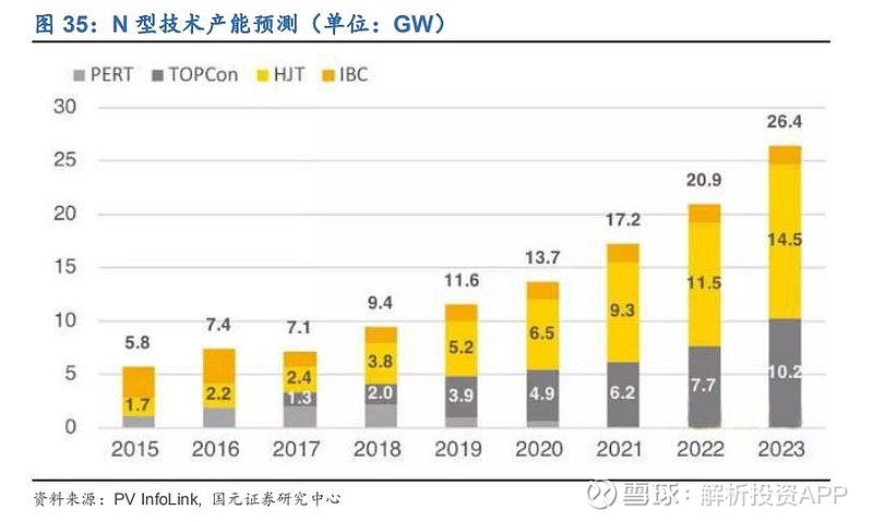 目前全球HIT電池規(guī)劃產(chǎn)能已超15GW,但實際產(chǎn)能在3-4GW左右。根據(jù)PV InfoLink預(yù)測,預(yù)計到2023年N型電池產(chǎn)能將達到26.4GW,而HIT電池產(chǎn)能將達到14.5GW,相比2018年HIT 產(chǎn)能提升約4倍。